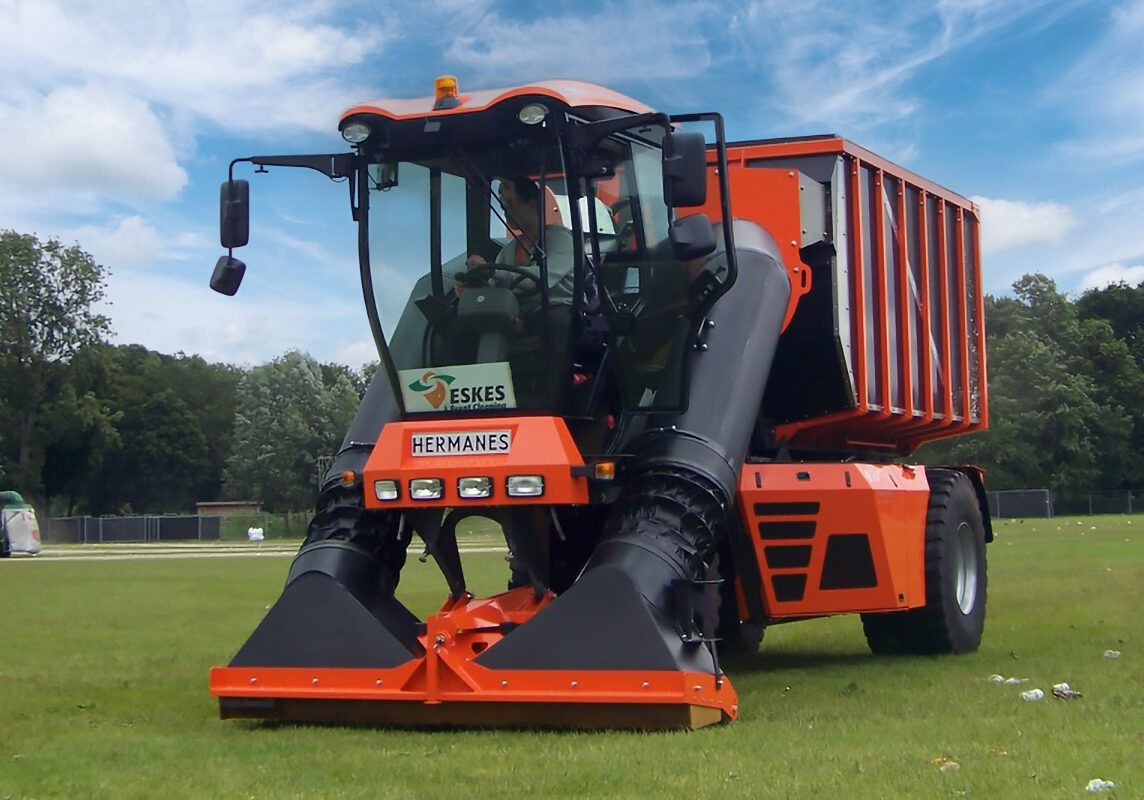 A three-wheeler was chosen to achieve low tire pressure, making the machine suitable for grassy areas and parks. By placing the suction nozzles at the front of the machine, the waste is not pressed into the ground by the vehicle. Two fans provide suction power and shred the debris. Due to its compact size, the machine can easily drive between all objects at the festival and can unload its waste into a container using the hydraulic tipping bin.